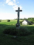 Közvetlenül a templom mellett, nagyon szépen gondozott környezetben található a kereszt.