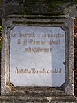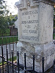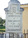 ISTEN DICSÖSÉGÉRE ÉS 1907 ÉVI MÁJUS 25 ÉN ELHALT JANÓ MIHÁLY KEGYESEMLÉKÉRE ÁLLITATTA ÜDVÖSSÉGÜNKE SZENT JELÉT ÖZVEGYE JANÓ KATALIN 1909 DICSÉRTESSÉK ÉS ÁLDASSÉK AZ ÚR JÉZUS SZENT NEVE.
