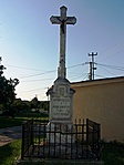 A kereszt előtti köveken levő táblákon olvashatóak a hősi halottak nevei. A templom másik oldalán egy feszület található.