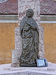 A műemlék templom és a Nepomuki Szent János szobor mellett.