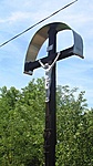 Érdekessége a keresztnek, hogy egy villanyoszlopból faragták ki.