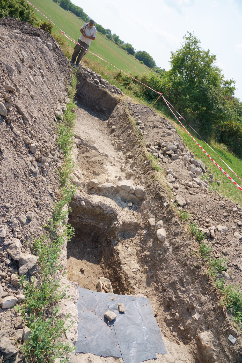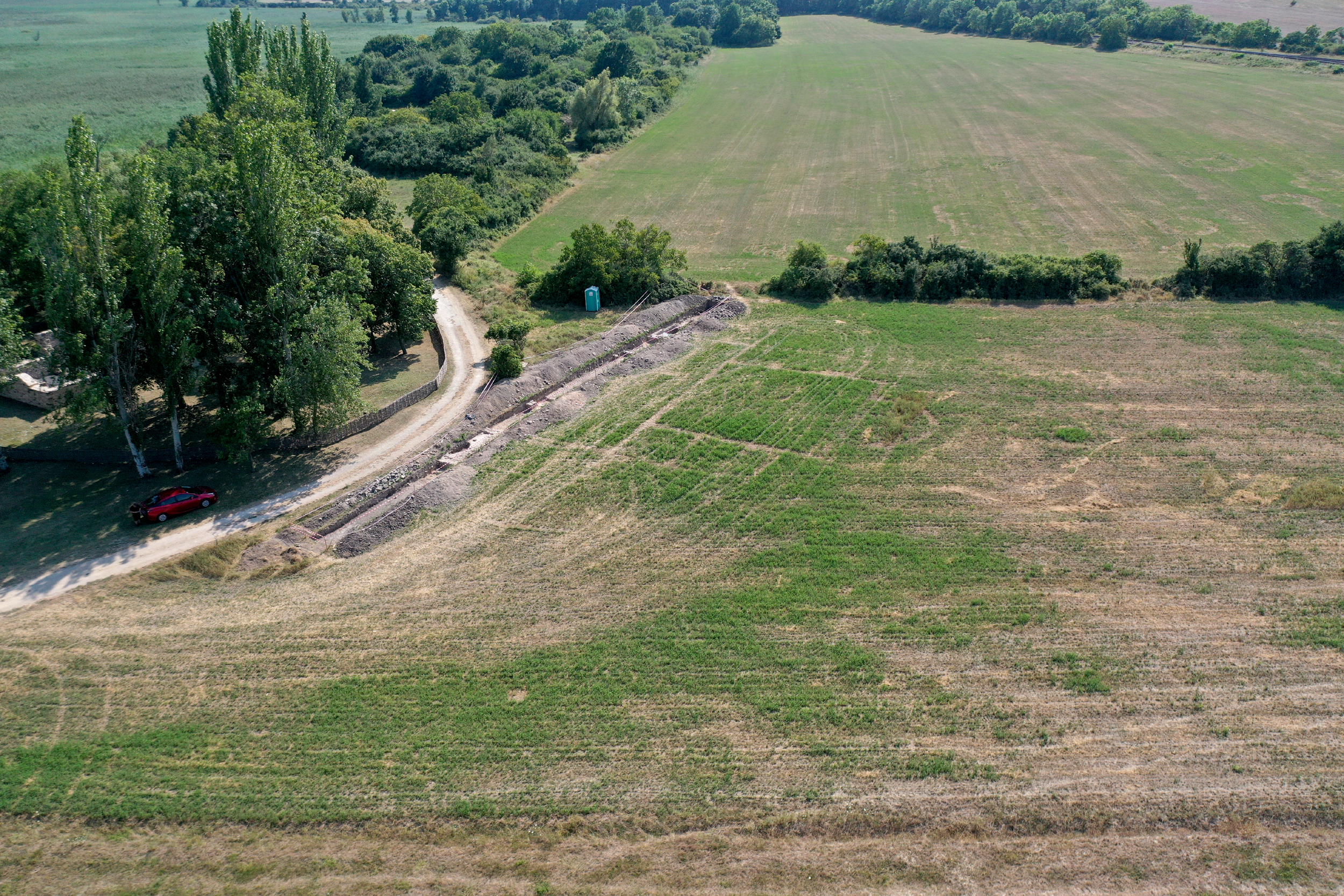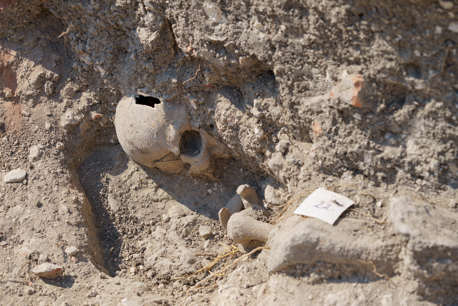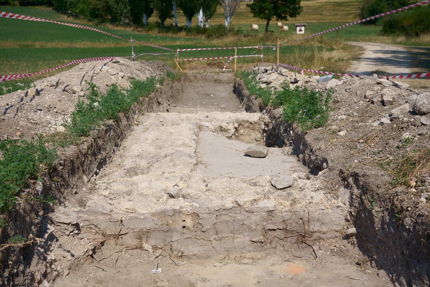 „A villa részleges feltárása július elején kezdődött el, a Nemzeti Kulturális Alap támogatásának hála. Elsőként egy csaknem ötven méter hosszú szelvényt húztunk, amire merőlegesen nyitottunk volna egy másikat. Csakhogy már az első szelvényben a visszabontott alapozások mellett a római omladékrétegbe ásva egy roppant szokatlan, egyelőre még magyarázatra váró jelenséggel találkoztunk: a falak mellett középkori temetkezések sokaságára bukkantunk. Hogy miért használták az akkor még feltehetően a felszínen is részben álló villaépület déli részét temetőnek, egyelőre még nem tudjuk, de a temető az épület teljes egészét lefedi és erős tudatosságot sejtett a még álló fala közé, a romok közti területekhez képest nem kevés nehézséggel kivitelezhető temetkezések rendszere” - tette hozzá a régész.