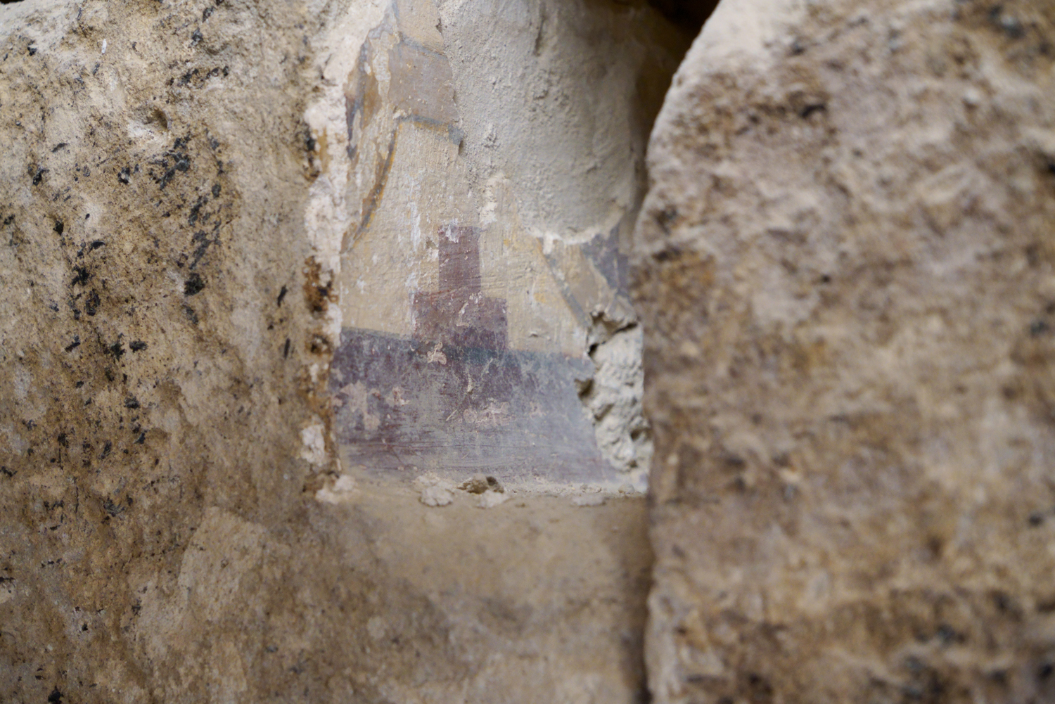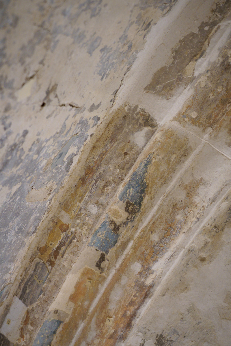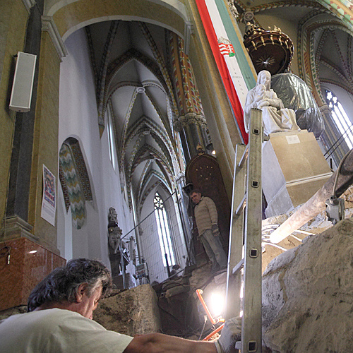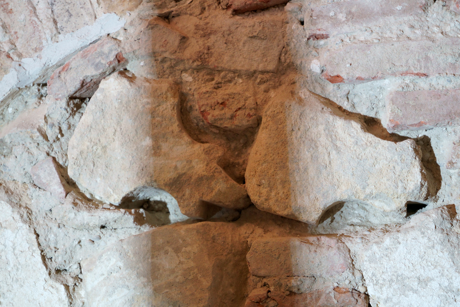 „A jelenleg Jézus szíve elnevezésű kápolnában kaptam megbízást arra, hogy a történelmi kifestések restaurálása előtt távolítsam el a vakolatrétegek egy részét. Ez a kápolna a 14. század végén, egy időben készült el a szentély kibővítésével” - mondta el a Műemlékem.hu Magazinnak Derdák Éva festőrestaurátor-művész. „Legnagyobb meglepetésemre a helyiség nyugati falán hamarosan egy nagyobb, elfalazott nyílást fedeztem fel. Azonnal szóltam a Budapesti Történeti Múzeum régészének, Papp Adriennek, aki Sudár Balázzsal, az intézmény történészével együtt megnézte ezt a nyílást. Hamarosan egy újabb, kisebb méretű, szamárhátívű ajtó bontakozott ki a nagyobb nyíláson belül, ami egyértelműen a templom azon időszakához kapcsolódik, amikor dzsámiként használták a törökök.”