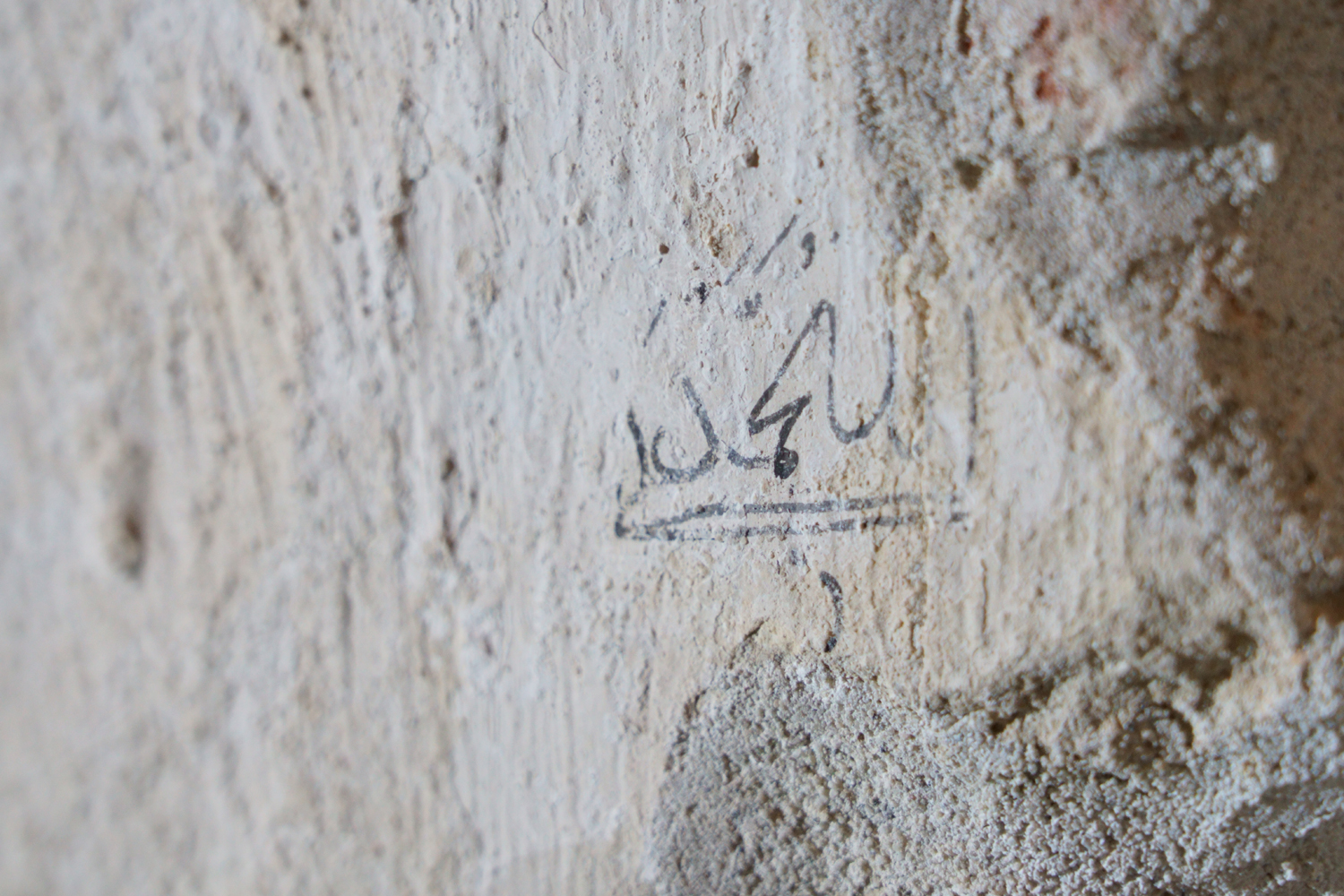 „A szamárhátíves kis kapu mellett előkerült egy apró török falfirka, ami megszokott a dzsámikban, Magyarországon is van belőle jó pár. Ez azonban egy kalligráfiai játék, amelyhez hasonlót még nem láttam” - tette hozzá Sudár Balázs, a BTM történésze. „Az Allah, a Mohamed és az Ali nevek követik egymást, de úgy, hogy a készítő egybefűzte őket, vagyis a nevek utolsó betűjéből formázta a következők első betűjét. Ez ismereteim szerint a hódoltságban teljesen unikális. A festékkel rajzolt felirat környezetében egyébként voltak vakolatba bekarcolt betűk is. Hogy a középkorban és jelenleg is kápolnaként használt helyiségnek mi volt a funkciója a török korban, nem tudjuk. Hasonló terek gyakran szent sírokat rejtettek, hogy itt volt-e ilyen, azt régészeti feltárás híján nem tudjuk.”