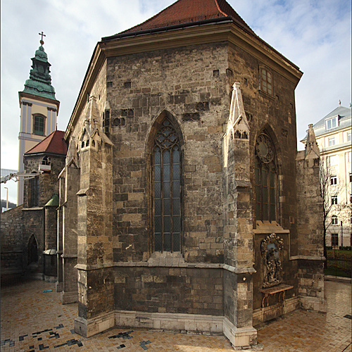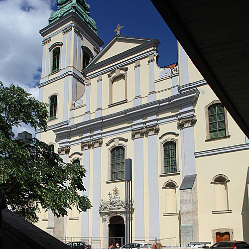 A pesti belvárosi plébániatemplom a város leghosszabb múltra visszatekintő épülete. Területén korábban római erőd állt, amely köveinek felhasználásával építették fel az első templomot, a feltételezések szerint még a 11. század első felében, majd egyes elméletek szerint ide temették el a túlparton meggyilkolt Gellért püspököt, mielőtt későbbi nyughelyére, Csanádra vitték volna. Ennek az első templomnak a létét a régészeti feltárások ugyan nem tudták igazolni, de 11. századi temetőrészlet előkerült, ami közvetve bizonyítja az egyházi épület közelségét. Az első, anyagában is megfogható templom 12. századi, amit a középkor során többször bővítettek és átépítettek. Pest török megszállása után dzsámiként használták az erősen sérült épületet, majd a város keresztény visszafoglalása után kijavították és ismét katolikus templom lett. Barokk átépítésére 1725 és 1735 között került sor, a 19. század elején Hild János, majd a század végén Steindl Imre végzett átalakításokat rajta.
