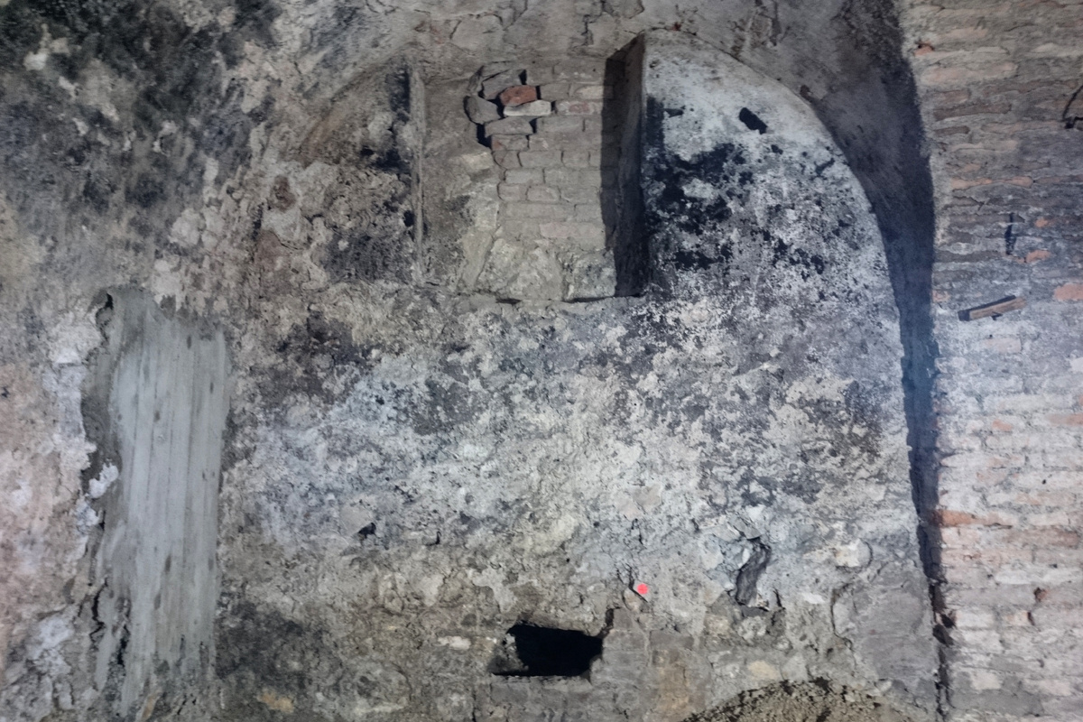 A templom fala a pincében