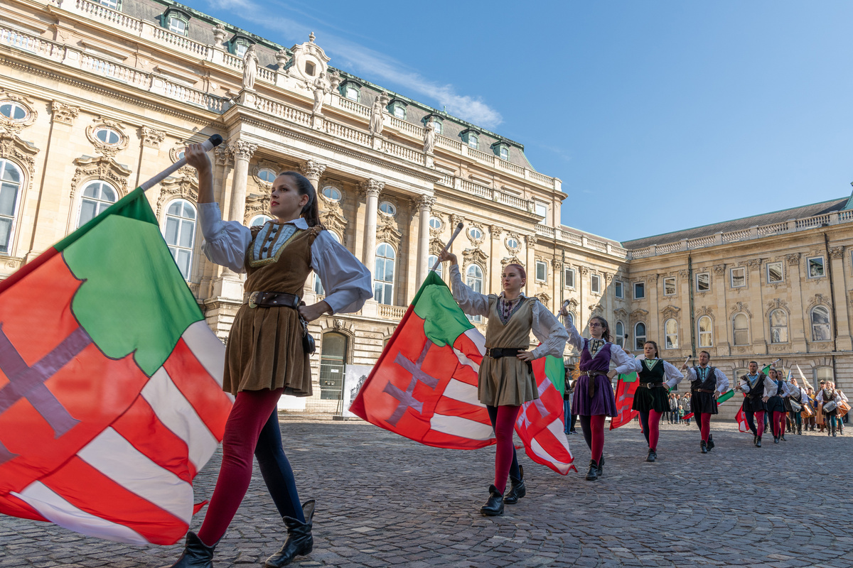 10:30 és 13:30 és 15:30 Zenés felvonulás kard- és zászlóforgatással a Halászó gyerekek kútjától az Oroszlános udvarig