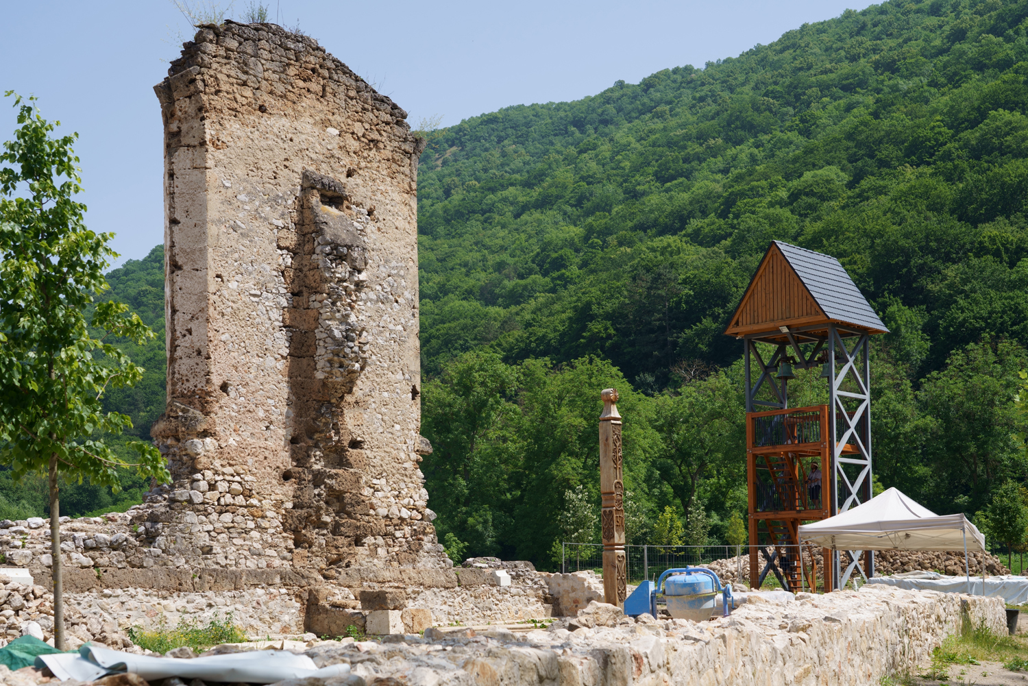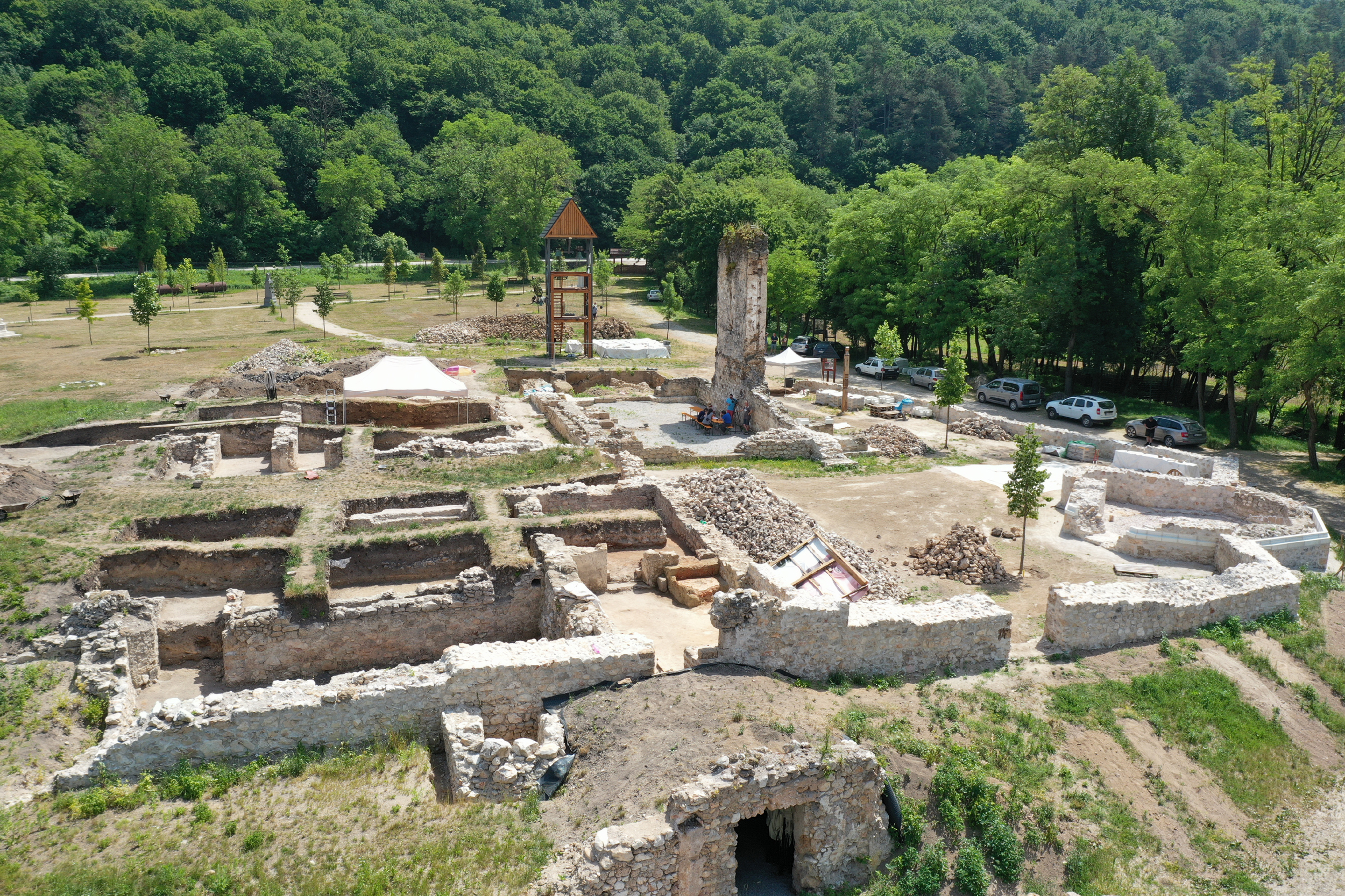 „Mi szerettük volna a teljes területet feltárni, azonban a szlovák műemlékvédelmi hivatal máshogy döntött, így egy ideig nem lesz több feltárási szezon Gombaszögön” - mondta el a Műemlékem.hu Magazinnak Orosz Örs, a legnagyobb szlovákiai magyar rendezvény, a Gombaszögi Nyári Tábor újraalapítója, a Sine Metu Polgári Társulás elnöke. „Az eddig feltárt romokat kell a jövőben konzerválnunk, s ez a munka részben már el is kezdődött. A kassai főkonzulátus pályázatának hála idén tizenöt kamionnyi követ hozatunk a helyszínre, s ezekből százhatvan centiméter magasra falazhatunk fel, sőt a templomban a felfalazás elérheti a két métert is. Ez azt jelenti, hogy ennyivel megemelhetjük a templom déli falának utolsóként álló nagy falcsonkját, sőt kiegészíthetjük azzal a két gótikus ablakkal, amelyek kialakítása világosan kivehető. Reméljük persze, hogy néhány év múlva újra kezdhetjük a kutatást, hiszen a területnek csak a felét tárhattuk fel.”