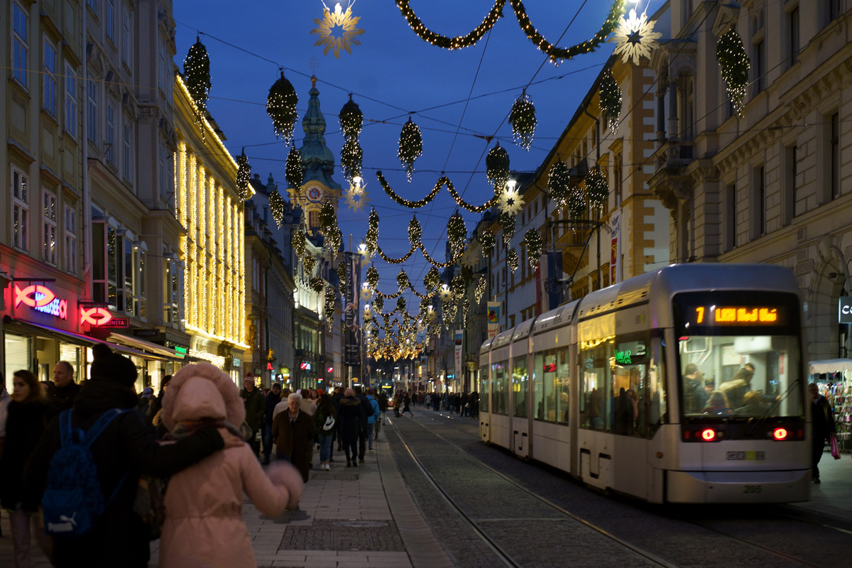 A második világháborúban Grazot érte Ausztriában a legtöbb bombatámadás, összesen ötvenhatszor repültek fölé az amerikaiak. A ledobott 29 ezer bomba csaknem nyolcezer épületet semmisített meg, ami szerencsére a történelmi óvárosban alig érzékelhető. 1999-ben éppen ennek érintetlensége miatt kapta meg a Világörökségi címet. Bár Ausztria második legnagyobb városa, az óváros a turizmus adta lehetőségek korlátaival továbbra is szinte intim, élvezhető. Persze különösen az adventi vásár idején szinte csordultig telik emberekkel, ám a szerencsés történelmi városszövet miatt a tömeget szét tudják szórni a különböző terekre, így kevésbé nyomasztó, hogy a szűk utcákon szinte egymásba érnek. De az is érezhető, hogy turistaforgalom szempontjából a lehetőségei határához ért, dacára annak, hogy a belvárosban (szinte) tilos az autóforgalom, az emberek vagy villamosoznak, vagy gyalogolnak, ami a kis távolságok miatt nem megerőltető.