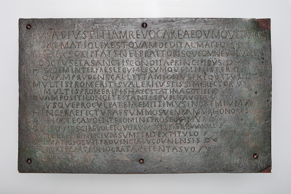 A nagyharsányi római villa különlegessége, hogy ismerjük a 4. század végi, 5. század eleji, vagyis az utolsó periódusához és fényűző átépítéséhez kötődő tulajdonosát. A szomszédos Beremend közelében még 1901-ben előkerült egy bronztábla, amelynek verses felirata Valerius Dalmatiust, dicsőítette, aki szenátor és egy távoli tartomány helytartója volt. A nagyharsányi villában talált mozaik központi jelenete a Római Birodalom nagyvárosait megszemélyesítő városistennőket ábrázolta, amely azt bizonyítja, hogy az épületegyüttes a fennállásának utolsó évtizedeiben az ő tulajdonában volt. A villa lakomatermet befogadó főépületének gazdag belsőépítészeti díszítése részben arra szolgált, hogy jelezze a vendégeknek a vendéglátó műveltségét, gazdagságát és tekintélyét.