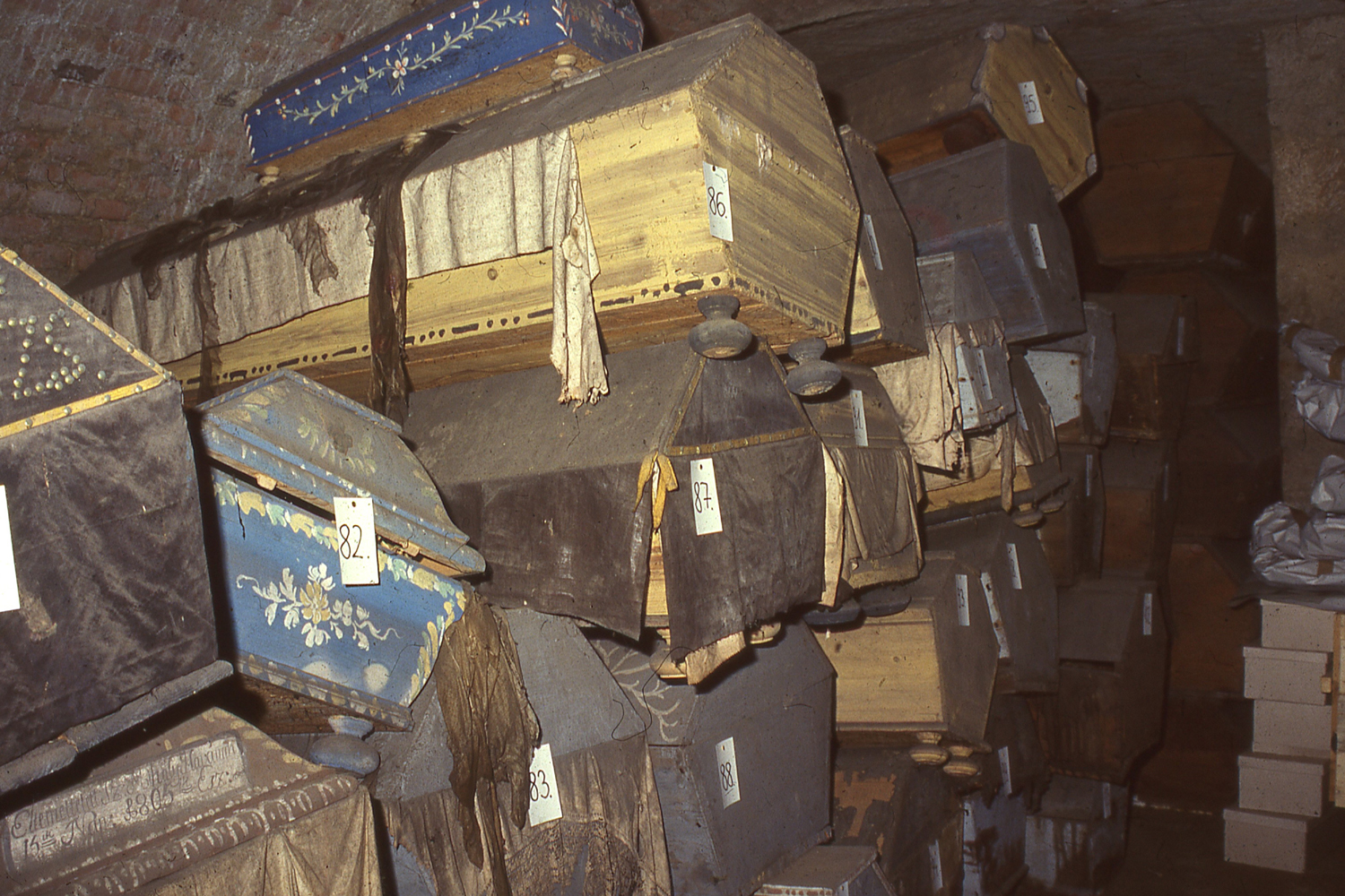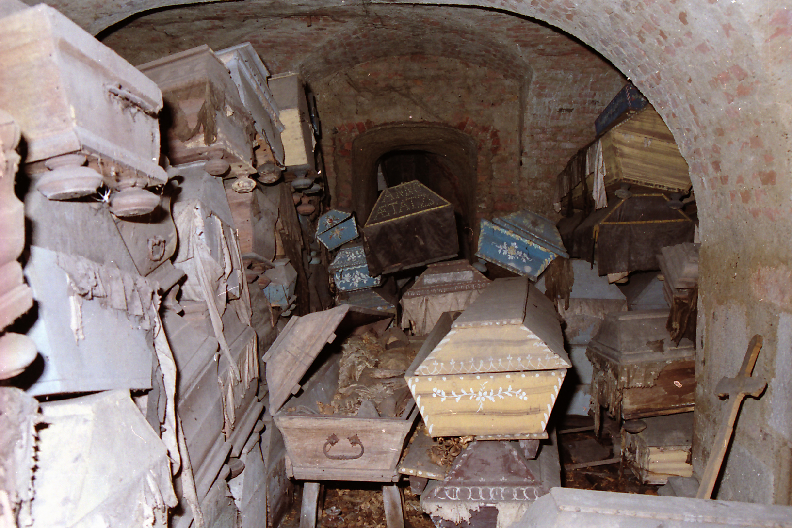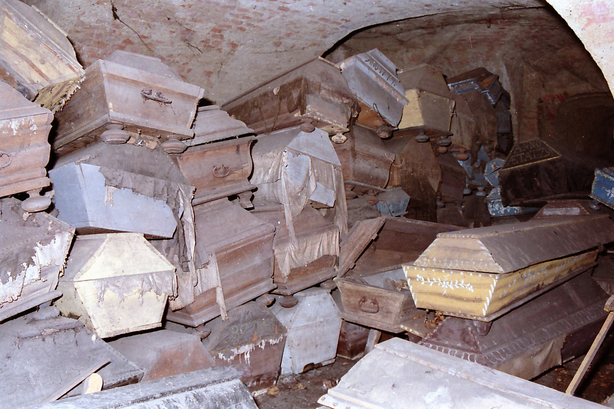 A két kriptahelyiségben 262 koporsóban 263 ember földi maradványait tárták fel – egy anyát a halott újszülöttjével együtt temettek el. Ez a pár orvostudományi szempontból is rendkívül érdekes volt, hiszen az anyán a második legrégebbi magyarországi császármetszés nyomait azonosították. Vagyis – mint az a halotti anyakönyvből is kiderült – az anya elhunyt szülés közben, s ezután vágták fel a méhét, hogy megmentsék a gyermeket, ám rövidesen az újszülött is meghalt. Volt még egy osszárium is 46 ember csontjaival.
