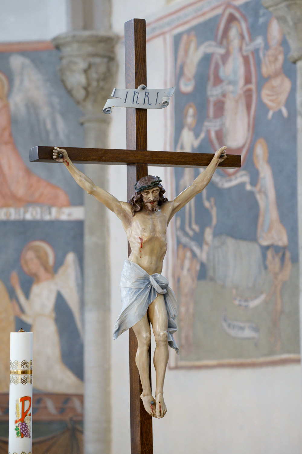 A templomban ezen kívül még több jelentős falkép látható, annak ellenére, hogy a második világháború végén a visszavonuló német csapatok felrobbantották a tornyát, amely a templom hajójába dőlt, lerombolva az északi fal tetemes részét. A háborút követően a plébános járta ki, hogy a romos épületet helyreállítsák és kibővítsék, így annak nyugati és északi része 20. század közepi, még déli fala és szentélye több mint 700 éves.