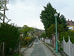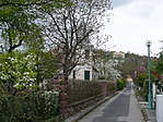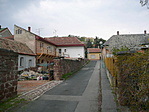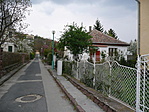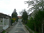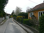 Az utca északi végén egy építkezés rontja csak a szűk kis kertvárosi utca képet.