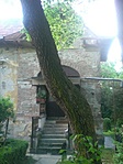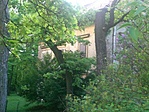 A kert szépen gondozott, ezzel szemben az épületről a vakolat nagy területeken hámlik, és az ereszcsatorna sincs túl esztétikusan megoldva a bejárat felett, félig a levegőben lógva..