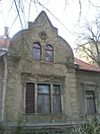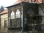 A figyelemre méltó, faverandás épületet épp tatarozzák -az udvar tele építőanyagokkal. Rá is fér, különösen a feljárónál láthatóak ázásnyomok, a homlokzat meg néhol siralmas állapotú.
