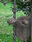 Semmi változás nem történt, a kaput továbbra is marja szét a rozsda, a kerítés nem védett részét pedig teljesen eltakarja az elhanyagolt növényzet.