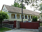 Szépen felújított épület, az ablakok aranyszínű osztásai hatnak idegenül.