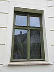 Az épület gyönyörűen fel van újítva. Hál istennek a nyílászárókat is felújították (vagy az eredetivel megegyezőeket csináltattak), homlokzattagolást és díszítést is megőrizték.