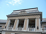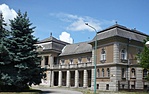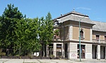 A fürdőszállót „tervezte Hegedűs Ármin és Bőhm Henrik, épült 1926-1928 stílusa: eklektikus”. „A második világháború alatt az épület egyik szárnyát aknatalálat érte. A helyreállítás munkálatait Eng Károly építész irányításával végezték. A fürdő az 50-es évek második feléig még működött. Később a fürdő fenntartása és működtetése megváltozott. A leromlott épületet a 70-es években felújították, de nem kapta vissza eredeti funkcióját. Különböző irodák működtek benne. Hasznosítására több terv és elképzelés született a város vezetősége részéről. A gyönyörű épület megmentése és restaurálása azonban a mai napig nem oldódott meg.”(2005 ben írta , de ma 2010-ben is érvényes)