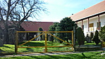 Szép, rendben lévő épület és udvar.
