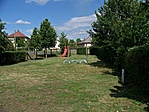 A hivatalban sikerült helyrajzi számos térképen kikeresgélni a két "közparkot", és amint ott megtudtam, a két szomszédos hrsz.-ú területen korábban egy "kiserdő" volt - az idézőjel indokolt, ugyanis egy zsebkendőnyi, talán másfél házhelynyi területről van szó, melyen jelenleg játszótér áll, sövénnyel körülvéve. A területet kaszálják, ám a játszótér objektumai (pingpongasztal, hinta, csúszda, három földbe ásott gumi) nincsenek különösebben jó állapotban.