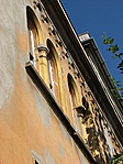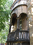 Az épület nagyon hangulatos, neoromán stílusú épület. A főkapu bélletes, félköríves timpanonnal. Az utca felé néző terasz alatt korábban díszkút lehetett (?), most virágágyás, a csap helye (?) egy luk a falban. Az utcai homlokzat emeletén nagyon szép díszű hármas ablak. A vakolat szinte mindenütt foltos, az utcafronton nem, ott a kváderes kialakítás időtállóbb. A kapu felé menet kis tábla nyoma a falon, alatta évszám: 1918-1920. Emeleti ablakok klasszikus román ikerablakok. Ablakok az eredetiek. Az utcafront sarkán, az oldalsó homlokzaton 1-1 íves loggia (fszt.) ill. a tetején erkély. Oldalsó és hátsó homlokzaton a koronázó párkány alatt végig félköríves díszítés.