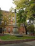 Sajnos nincs módom kideríteni, hogy a "plasztika" pontosan mit jelöl. A téren több plasztika is van, ebből kettőt kizártam, mert külön is szerepelnek a listán: ezek a Rákóczi szobor és a Hősök kapuja előtti két katona szobor. (De láttunk már olyat, hogy ugyanaz a dolog kétszer szerepel itt.) Még maradt két plasztika, amit "felfedeztem" a téren. Az egyik az egyetemalapítók domborműve. A másik az 1849-es szőregi csata emlékműve. Mind a kettő kiváló állapotban van.