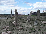 Jelenleg bekerítetlenül , nagyrészben eldőlve fekszenek a sírkövek a domb tetején.