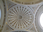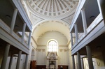 Kereszt alaprajzú belső tér, oldalsó szárai csak jelzésszerűek. Lapos kupolával fedett középrész, dongaboltozatos szárak. Orgonakarzat (Hild József, 1854), orgona (Deutschmann Jakab, 1829), kétemeletes oldalkarzatok. A szószéket félkupolával fedett építmény veszi körül (Hild József, 1831). A karzat alatt Zichy Manóné síremléke (Raymond Gaiard, Feszl Frigyes, 1854). U-alaprajzú kripta.