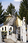 A temetőben lévő Kálvária és stációk. A Kálvária-csoport alépítménye egy dongaboltozatos kápolnát foglal magába. Épült 1863-ban, falképei a 20. sz. második felében készültek. A stációk fülkéiben vaslemezre festett képek.