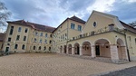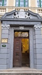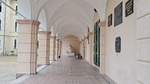 Az udvar felől fényképezve, régi tanárok emléktábláival