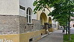 Itt is sok a lábazati hiba, ahol meg nem hullott le a vakolat, ott összefirkálták. Gyenge négyes.