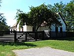 Szépen felújított épület, hátsó részén oszlopos tornác figyelhető meg.