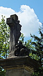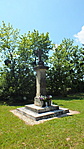 A temető külön részében áll a szép nagy szobor, kereszttel, gondozott