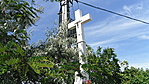 Szépen rendbe tartott kereszt A környezete is friss virággal körbe ültetve.