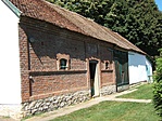 Remélem, ez az az épület. A Fő utcának van egy nyúlványa az 50-es háznál, ahol ki van írva, hogy 51-es szám, ott vannak épületek, és a nyúlvány végén van ez az épület. Visszafelé jőve az 52-es házat nem találtam, az 53-as pedig már ott van, ahol a nyúlvány kezdődött. Tehát ez, amit fényképeztem, vagy az 51-es, vagy az 52-es. A leírást nem találom, hogy honnan másoltam, szerintem tavaly szeptember óta leszedték az internetről, így képet sem találok róla. De az végülis igaz az épületre, hogy nyerstégla felületképzésű, magaslatra telepített, de hogy homlokzatán szegmensíves nyílások sorakoznak-e, azt nem tudom. Van 2 ablakszerűség és 1 ajtó, ami fölött szegmensívnek nevezhető dísz van.