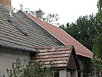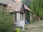 Itt is esővédő-szerűen kiugró a tornác, a ház bejárata előtt.
