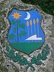Remek állapotban van a címer, egy kisebb sziklatömbön látható, nem messze a kórház bejáratától.