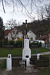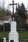 A kereszt nagyon szép állapotban és szépen rendezett játszótéren van.