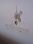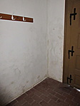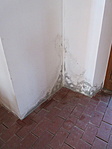 A lábazaton, a falakon kívül és belül is sok helyen vizesedés, penészesedés látható,