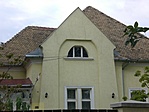 Jó állapotban lévő, érdekes formavilágú, letisztult épület, talán az üvegezett terasz a leginkább figyelemreméltó része.