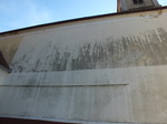 Felújított templom, az északi oldala mohásodik