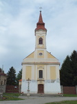 Szabadon álló, egyhajós, félköríves szentélyzáródású, K-i homlokzati tornyos templom, a szentély felett kontyolt nyeregtetővel, a szentély É-i és D-i oldalához kapcsolódó kápolnával és sekrestyével. Csehsüveg boltozatú hajó és szentély, a hajó bejárati oldalán karzat. Falkép: a szentélyben: 1785 (Kronovetter Pál), átfestve; hajóban: 1929. Festett üvegablakok, keresztút: 1930. Berendezés: jellemzően 19-20. század; főoltár, mellékoltár, szószék: 19. század első fele. A templom K-i homlokzatának D-i végéhez kerítés csatlakozik, ami összeköti a telek DK-i sarkában álló, L alaprajzú, földszintes plébániaépülettel. Épült báró Patachich Ádám és gróf Kollonich László érsekek költségén 1784-ben. Az 1930-as években berendezését megújították.
