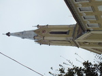 Titulusa Szt. István király. Zárt utcavonalas beépítésben álló, egy homlokzati tornyos, egyhajós, poligonális szentélyzáródású épület. Főhomlokzatát négy lizéna osztja három szakaszra. Kétszárnyú, szemöldökgyámos kapuja csúcsíves bélletben helyezkedik el. A kapu két oldalán 1-1- mérműves lőrésablak látható. a kapu felett csúcsíves, mérműves ablak, tagolt vakolatkeretezésben, két oldalán a lentebbieknek megfelelő lőrésablak. E felett rózsaablak, ívsoros főpárkány, majd óratorony, csúcsíves ablakkal. A toronysisak bádoggal fedett. A tagozatok nélküli hajó ablakai csúcsíves, keretezetlen nyílások, közöttük egyszerű támpillérek. A szentély ugyanilyen kialakítású, azzal a különbséggel, hogy felül ívsoros főpárkány zárja a homlokzatot.