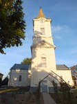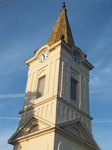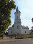 épült templom az iskolaudvaron ma már alig érvényesül. A nyugat-keleti tájolású főhajót észak-déli irányú kereszthajóval bővítették. A templom nyugati homlokzatán klasszicista homlokzatdíszekkel, timpanonokkal tagolt torony emelkedik. Az épület homlokzata egyszerű, a tető bádoglemez fedésű. A főhajó déli falában, a leomlott vakolat alatt középkori téglák utalnak a templom középkori eredetére.