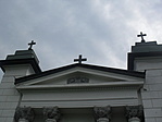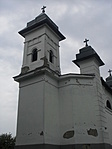 A hátsó homlokzat tornyának emeleti részén félköríves ablakok.