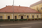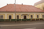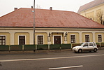 Utcai homlokzatán széles lizénákkal és eresz alatti, frízzel keretezett mezőkben középen újabban megnyitott bejárat, ettől jobbra és balra 3-3 kőkeretezésű, egyenes ablak, szemöldökükön középen szembefor5duló volutákka.
