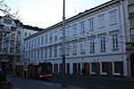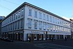Kétemeletes késő klasszicista sarokház, 1800 körül. Hild József, 1836: emeletráépítés, homlokzat.