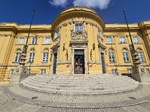 Déri Frigyes Múzeum, neobarokk, 1926-1928. Tervezte: Györgyi Dénes és Münnich Aladár. Lépcsősor mellvédjén Medgyessy Ferenc szobrai.