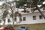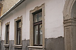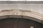 A kapualj udvari homlokzata fölött 3 kőkonzolos nyugvó széles eresz. Az északi, udvari homlokzaton Szentháromság-dombormű.